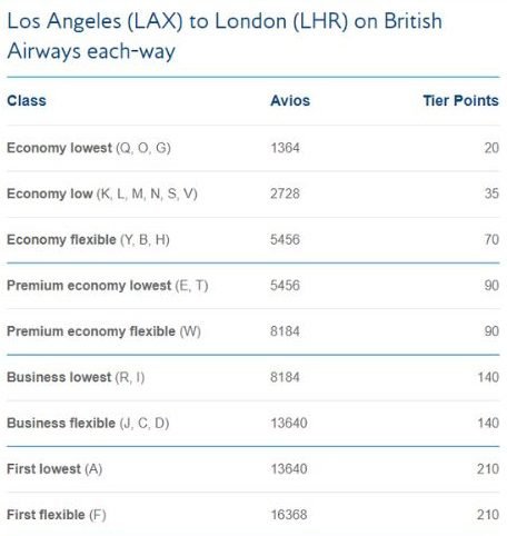 If you’re travelling from Los Angeles to London (Heathrow) as an Executive Club Blue member, the number of Tier Points you’ll earn will be as shown in the table below: